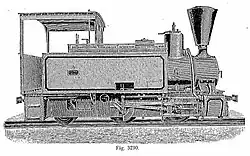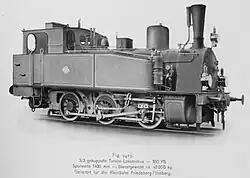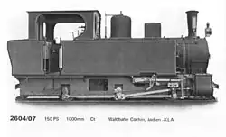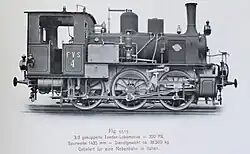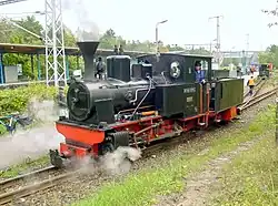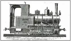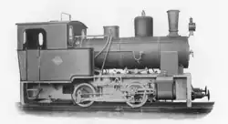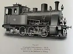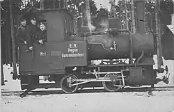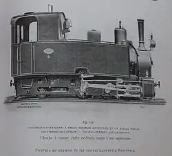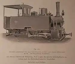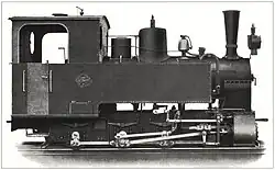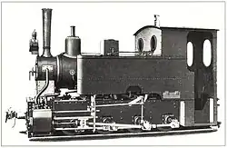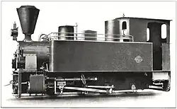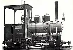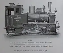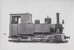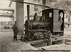 ca 1902 0-4-0 1,000 mm (3 ft 3+38 in) 125 hp Two-cylinder compound locomotive with two coupled axles. Supplied to the Ruhr-Lippe-Kleinbahnen. Steam bell, vacuum brake (König system), central lubrication device