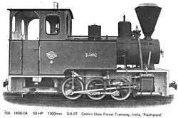 1498 1904 0-6-0 1,000 mm (3 ft 3+38 in) 50 hp Rajahgopal, Cochin State Forest Tramway