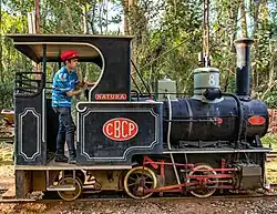 20 hp Northern Colliery Company, Waro Limestone Scenic Reserve, New Zealand. Sold on to New Zealand Cement Co. on Limestone Island in the 1910s and from there to Wilson's Portland Cement Co. in Portland in 1918, where it was operated as Bertha, now the Museum of Transport and Technology in Auckland.[14]