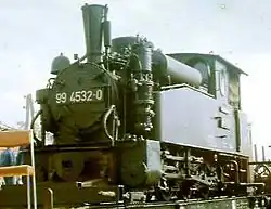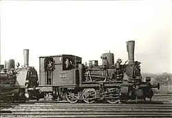 617 1900 0-6-2 750 mm (2 ft 5+12 in) 100 hp Two-cylinder locomotive with three coupled axles and one radial axle. Steam bell, outer frame, upper water tanks. Delivered to the Rosenberger Kreisbahn