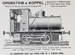 10. ^ Derek A. Bayliss: The Origins of Orenstein & Koppel. The Industrial Railway Record. No 47, April 1973, p. 27-32.
