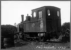 367 1899 0-4-0 600 mm (1 ft 11+58 in) 20 hp Delivered via the Swedish general agent Carl Ström to the Hamra–Tumba Järnvägen of Gustaf de Laval on Gotland in Sweden. From 1916 owned by the construction company Byggnads AB, who sold it to the city of Stockholm in 1917 for work on Hammarbyleden.[4]