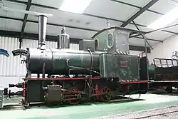 1001 1905 0-6-0 750 mm (2 ft 5+12 in) 107 hp Asturias, No. 6, narrow gauge railway Valdepeñas–Puertollano (El trenillo de La Calzá), Spain[11]