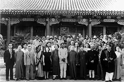 Hu Shih with visiting guests at the Peking University