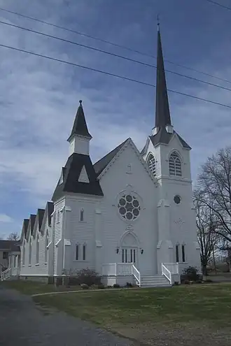Main St. 42°32′29″N 76°39′34″W / 42.54139°N 76.65944°W / 42.54139; -76.65944 (First Presbyterian Church of Ulysses)