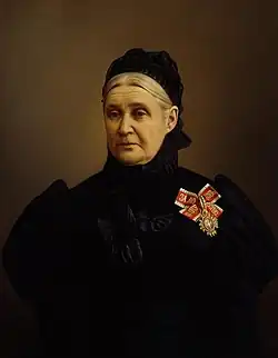 On 20 January 1873, Tomilova as approved as an assistant.[11] In 1874, she assumed the position of principal upon the death of her predescesor.[12] In 1874, she was awarded the Order of Saint Catherine (small cross), on the occasion of Grand Duchess Vera Konstantinovna's wedding, who she was a tutor to. She would later resign due a deteriorating eye disease which had been interfering with her work. |