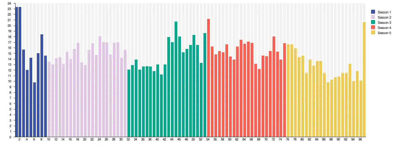 | 5 | 22 | September 22, 1992 | May 5, 1993 | |