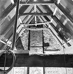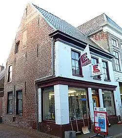Left basement building under transverse gable roof with on the right a low floor Gebouw Workshop 13th century (core) Dijkstraat 30 53°19′14″N 6°51′27″E / 53.32061°N 6.85762°E / 53.32061; 6.85762 (RM8210 - Dijkstraat 30) 8210