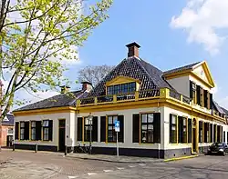 Five bays wide, large building under high hipped roof with corner chimneys and a big cornice Gebouw Staff residence 1750-1800 Gouden Pand 1 53°19′16″N 6°51′22″E / 53.32113°N 6.8562°E / 53.32113; 6.8562 (RM8214 - Gouden Pand 1) 8214