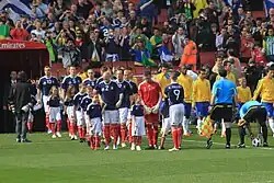 The Scotland national football team is the joint-oldest international football team, having played in the first official international match, a goalless draw on 30 November 1872 against England.[1] Since then, the team has established a long-standing rivalry with England, particularly in the annual British Home Championship, which Scotland won 24 times outright and shared a further 17 times.[2] The team has enjoyed less success in continental and global competition. Even though Scotland has participated in eight FIFA World Cup and three UEFA European Championship final tournaments,[3] the team has never progressed beyond the first round of any major tournament.[3][4]