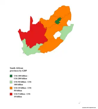 This article lists the provinces of South Africa by their gross regional domestic product (GDP).