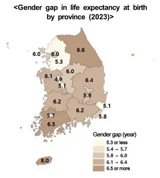 - ^ a b c d e "Life Tables for Korea, 2023 (the nation and provinces)" (PDF) (Press release). Statistics Korea. 4 December 2024. Retrieved 1 July 2025.