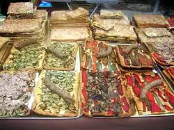 | Mojama | Andalusia | seafood | filleted salt-cured tuna originating in Phoenicia. It is usually served in extremely thin slices with olive oil and chopped tomatoes or almonds. | |