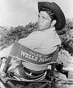 Tales of Wells Fargo is an American Western television series starring Dale Robertson in 201 episodes that aired from 1957 to 1962 on NBC. Produced by Revue Productions, the series aired in a half-hour format until its final season, when it expanded to a full hour and switched from black-and-white to color.[1][2]