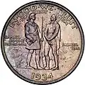 Daniel Boone | Frontiersman facing a Native American, "1934" in field | 90% Ag, 10% Cu | Pattern:[11]
