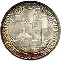 | 50¢ | California Pacific International Exposition half dollar | Minerva and other elements of the Seal of California | California Tower and Chapel of St. Francis, Balboa Park, San Diego | 90% Ag, 10% Cu | Authorized: