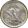 | 50¢ | Texas Centennial half dollar | Eagle sitting on a branch in front of the Lone Star, the symbol of Texas | Victory spreading her wings over the Alamo with Sam Houston on her left, Stephen F. Austin on her right, and the Six Flags of Texas flying above her head | 90% Ag, 10% Cu | Uncirculated: | 1935 |