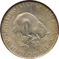 | 50¢ | San Francisco–Oakland Bay Bridge half dollar | Grizzly Bear | San Francisco–Oakland Bay Bridge | 90% Ag, 10% Cu | Authorized: