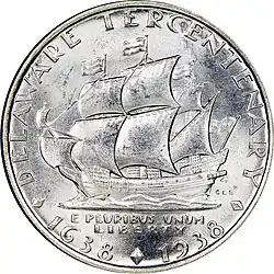 | 50¢ | Delaware Tercentenary half dollar (dated 1936) | Old Swedes Church | Kalmar Nyckel | 90% Ag, 10% Cu | Authorized: