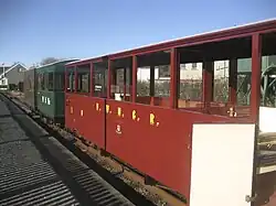 | 3 | 1980 | WHR Ltd. | open toast rack | 18 | Three open unglazed compartments. Bodywork mounted on a modified Hudson bogie chassis. Sold to a private Railway in Hampshire in March 2010. | |