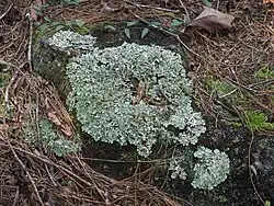 This is a list of species in the foliose lichen genus Xanthoparmelia. It is the most speciose lichen genus,[1] containing an estimated 822 species as of 2020.[2] The key characteristics of Xanthoparmelia include the cell walls containing Xanthoparmelia-type lichenan, the pored epicortex, margins without cilia, simple rhizines, small, ellipsoidal spores and bifusiform or rarely weakly fusiform or bacilliform conidia.[3]
