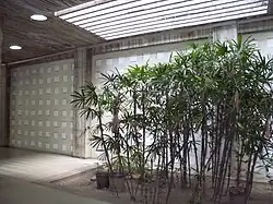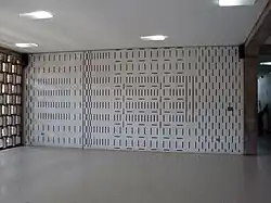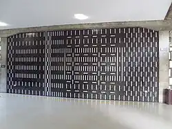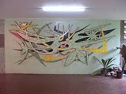 Mateo Manaure has a reported 26 pieces of work on the campus. Though his pieces are mostly ceramic murals, he also created wooden acoustic frames and stained-glass windows.[27] In addition, he created ventilation elements of the hospital lobby,[28] and was the artwork supervisor of the project.[29]