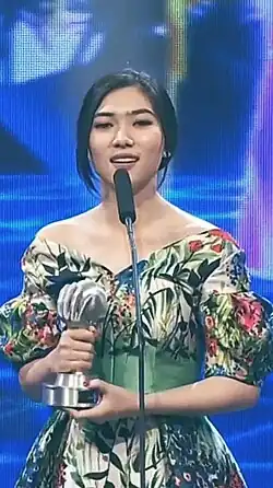 Indonesian singer Isyana Sarasvati has received many awards. These include awards as a classical and a pop singer. She started her career through her debut single in 2014 entitled "Keep Being You" which won her the Best Male/Female R&B/Soul/Urban Solo Artist award at the Anugerah Musik Indonesia 2015. Her hit single "Tetap Dalam Jiwa" won her the Best of the Best Newcomer award in the same event.[1] Sarasvati won an international award at the Mnet Asian Music Awards as Best Asian Artist Indonesia in 2016.[2] The following year she won a trophy for the professional category, Composer of the Year[3] and 2 awards in Anugerah Planet Muzik. In 2017 Sarasvati represented Indonesia at the MTV Europe Music Awards for the Best South East Asia Act category.[4]