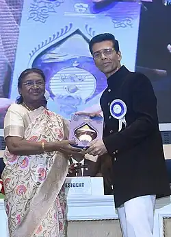 Karan Johar is an Indian filmmaker and television personality who works in Hindi Cinema.[1] He has won several awards, including four National Film Awards and seven Filmfare Awards. In 2020, the Government of India honoured him with Padma Shri, the country's fourth highest civilian award.