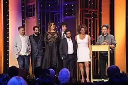 Ali Liebegott, Jay Duplass, Our Lady J, Ethan Kuperberg, Joe Lewis, Alexandra Billings and Joey Soloway accepting the Peabody Award for Transparent