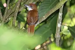 Ovenbirds comprise a large family of small sub-oscine passerine bird species found in Central and South America. They are a diverse group of insectivores which gets its name from the elaborate "oven-like" clay nests built by some species, although others build stick nests or nest in tunnels or clefts in rock.