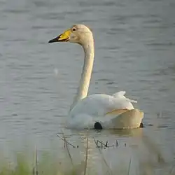Many birds visit the island during the winter and migration seasons including waders such as purple sandpiper, ruddy turnstone, and European golden plover.[2] Wintering wildfowl include small numbers of whooper swan. A bird observatory was established on the Calf of Man in 1959 to study the migrating and breeding birds. By the end of 2001, 99,042 birds of 134 species had been ringed there.[3] Numerous rarities have been recorded there including mourning dove and white-throated robin.