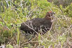 Moorland areas on the island are home to willow ptarmigan, Eurasian curlew, and northern raven.[2] Woodland birds include long-eared owl, common treecreeper, Eurasian blackcap and common chiffchaff. There is little native woodland on the island and several species found in Great Britain, such as tawny owl, European green woodpecker and Eurasian jay, do not breed on the isle of Man.