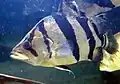 Siamese tigerfish Datnioides microlepis 18" These fish must be kept in large aquaria.[4]