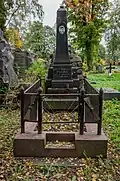 The cemetery, opened in 1863, was the third cemetery in the monastery complex, after the original Lazarevskoe Cemetery in the 1710s, and the Tikhvin Cemetery in 1823.[1] It became known as the Nikolskoe after the construction of the Church of St. Nicholas between 1868 and 1871 to the design of diocesan architect Grigory Karpov.[1][2] From its inception burial there was restricted to the elite of society, the monastery's Spiritual Council noting that "the Lavra cemetery is not open to everyone, as are the city cemeteries, but only a few persons from the government service and persons with honorary titles are buried here."[2] Part of the cemetery also served as the burial site for the Monastery's monks and the metropolitans of St. Petersburg, leading to the name Bratskoe (Russian: Братское), or "Brotherhood" section.[3] Wealthy patrons commissioned large chapels and crypts, with elaborate decorations and reliefs from prominent artists such as Nikolay Laveretsky, Ivan Podozerov, Robert Bach and Ivan Schroeder.[1]