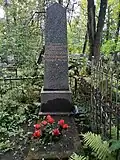 The cemetery was created from land set aside in 1903, with the first burial taking place on 28 May 1905. It was mainly a burial location for the poor of the area, as well as soldiers and sailors who died in the First World War.[1] It rose to prominence in the Second World War when it became a site of numerous mass graves of those who died in the siege of Leningrad from 1941 to 1944.[1] Since then leading figures from a variety of sections of society have been interred in the cemetery. Saint Petersburg's history as a naval base have made the cemetery a popular location for naval officers. Those buried at the Serafimovskoe Cemetery include Giorgi Abashvili, Vladimir Alafuzov, Ivan Yumashev, and Mikhail Zakharov. There are also memorials to several maritime accidents and disasters, including the sinking of the ships Mekhanik Tarasov and Polessk, and the loss of the submarines Kursk and Komsomolets. On 6 July 2019 the fourteen men who died in a fire aboard the submarine Losharik were interred in the cemetery.[2] A memorial also commemorates the dead of the 1981 Pushkin Tu-104 crash, which included a large number of Soviet Navy officers. Other military figures interred in the cemetery include Soviet Air Force Lieutenant General Dmitry Alexandrovich Medvedev, two flying aces of the Korean War; Anatoly Karelin and Mikhail Mikhin, and Major General Sergei Ivanovich Tiulpanov, who commanded the Propaganda Administration of the Soviet Military Administration in Germany. Among the many other Heroes of the Soviet Union who were buried here are Boris Alekseyev, Nikolai Archakov, Ivan Afanasyev, Anton Gurin, Pavel Pavlov, and Fyodor Simakov.[1]