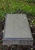 During the early Soviet period a number of monuments were stolen or destroyed. The cemetery was officially closed for burials in 1927, though they continued until 1932, and it was decided to turn it into a necropolis museum, displaying historically and artistically significant graves.[2][1] Alongside this was concept of gathering together the graves of the friends and contemporaries of Alexander Pushkin for the 1937 centenary commemorations of the poet's death. The architectural and planning department of Lensovet, the city administration, was tasked with creating a memorial park project.[2] Plans were drawn up by architects E.N. Sandler and E.K. Reimers, with further input from the city's chief architect L.A. Ilyin.[2] The Funeral Affair Trust was established to run the necropolis museum, including removing abandoned gravestones for sale as building materials.[4] The reconstruction radically altered the nature and appearance of the Tikhvin cemetery. With the intention being to create an "artists' necropolis", graves of those from other sections of society were removed. Fewer than a hundred of the original monuments were preserved.[2] Meanwhile, the remains of prominent artists, sculptors, composers and musicians were reburied in the cemetery. Among them were personal friends of Pushkin, including Konstantin Danzas, Anton Delvig, and Fyodor Matyushkin.[2]