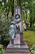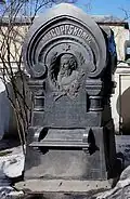 Over time the cemetery became a popular and prestigious burial ground for those of many areas of society. The wealthy merchant A.I. Kosikovsky was buried under a monumental sarcophagus on a high pedestal surmounted by a canopy on eight fluted columns.[4] Opposite it stood a similarly grand monument to the statesman Pavel Demidov, which has since been lost.[4] In 1857 the remains of the composer Mikhail Glinka were returned from Berlin and buried in the cemetery, with a grand monument erected two years later to the design of architect I. I. Gornostayev, with sculptures by Nikolay Laveretsky.[4][9] On 1 February 1881 the author Fyodor Dostoevsky was buried in the cemetery, with a similarly large monument.[4][10] During the 1880s composers Modest Mussorgsky and Alexander Borodin were buried in the northern part of the grounds, with Pyotr Ilyich Tchaikovsky following in 1891.[4][11][12][13]