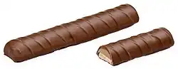 | Curly Wurly | United Kingdom, Ireland, New Zealand, Australia, the Netherlands | Cadbury | Chocolate-covered caramel braid |