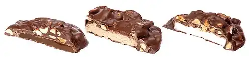 | Walnut Crush | United States | Fenn | White nougat and walnuts covered in dark chocolate | [56] | |