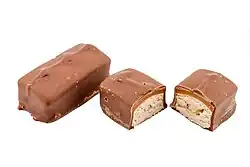 | Zero Bar | United States, Canada | Hershey | Caramel, peanut and nougat covered with white fudge. | [59] |