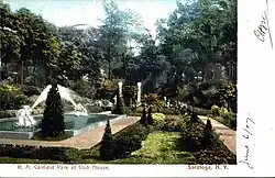 This 1907 postcard of Canfield Park and Saratoga Springs' nickname "the Spa City" both recall the era when the city's mineral springs and hotels made it a fashionable resort.