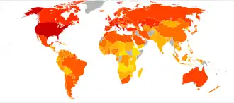 Map of average daily dietary energy availability per capita in 2006–2008.[1]