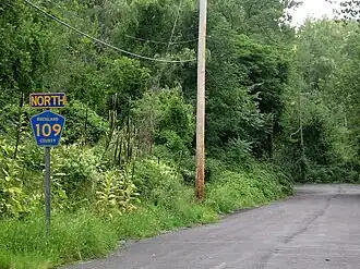 ![]() CR 109's southern terminus at the dead end ahead despite the erroneous north marking above 109. | |