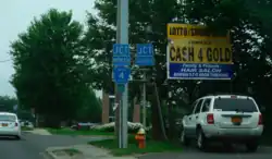 County routes in Suffolk County, New York are maintained by the Suffolk County Department of Public Works (SCDPW) and signed with the Manual on Uniform Traffic Control Devices-standard yellow-on-blue pentagon route marker. The designations do not follow any fixed pattern. Some route numbers are deliberately omitted in order to alleviate confusion with New York state routes (such as CR 109 and CR 114); however, this practice is inconsistent, as other numbers including 108, 111, and 112 are duplicated. These routes are officially logged inside the New York State Department of Transportation's "Local Highway Inventory", which lists all county routes for each county in the State of New York.[1]