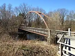 Pony Truss Bridge[11] pedestrians accessible from Riverside Park[12] off Recreation Rd., Weston 42°20′24.16″N 71°15′21.39″W / 42.3400444°N 71.2559417°W / 42.3400444; -71.2559417 (pedestrian bridge)