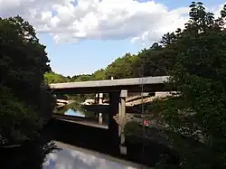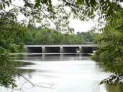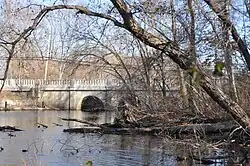 [1] Road bridge from Riverside Rd., Newton to Recreation Rd., Weston demolished 1960s around time of Massachusetts Turnpike Extension 42°20′28.36″N 71°15′29.73″W / 42.3412111°N 71.2582583°W / 42.3412111; -71.2582583 (Newton / Weston road bridge)