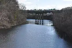 dam No crossing. 42°15′31″N 71°15′46.8″W / 42.25861°N 71.263000°W / 42.25861; -71.263000 (dam)