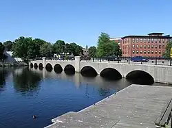 Bridge Street Bridge Bridge St Newton to Watertown 29.3 meters (96 ft)[2] 42°21′56.87″N 71°12′15.96″W / 42.3657972°N 71.2044333°W / 42.3657972; -71.2044333 (Bridge Street)