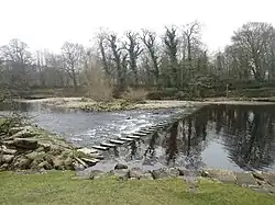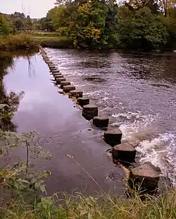 | Stepping stones | Public Footpath | Burley-in-Wharfedale | Stepping stones, unusable at high water levels. The Burley Bridge Association is campaigning to have a footbridge built here, as has been requested by local residents since 1898.[1] |