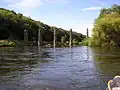 | Ballingham Railway Bridge | grid reference SO 569 306 | 1855-1859 | Ballingham | Carried the closed Hereford, Ross and Gloucester Railway over the river, the bridge decking is demolished. | [4] |